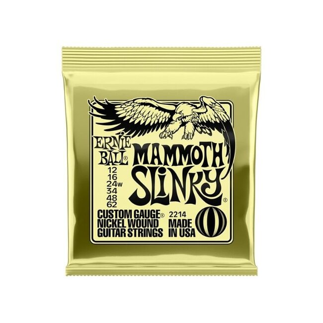 So you like it heavy? Ernie Ball Mammoth Slinky 2214 Nickel Guitar Strings Set offer you a truckload of heavy, being the thickest string set ever made by Ernie Ball. With the heaviest string coming in at .62mm, you'll find that even the lower strings feel extra tight and powerful when you play. This set of strings is perfect for heavier drop tunings like drop B, drop A and beyond, giving them a bright balanced tone – which thinner strings simply cannot do.