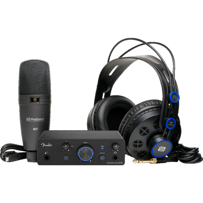 The Fender Quantum Creator Studio Bundle is a complete all-in-one recording solution designed for musicians, podcasters and content creators. Featuring the Fender Quantum LT2 USB audio interface, a high-quality condenser microphone, and professional studio headphones, this bundle provides everything you need to start recording straight out of the box.