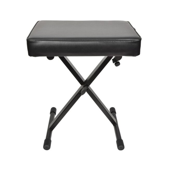 A compact X-frame keyboard bench with deep upholstered vinyl seat, 3 height settings and fold-away legs for easy storage Read more.