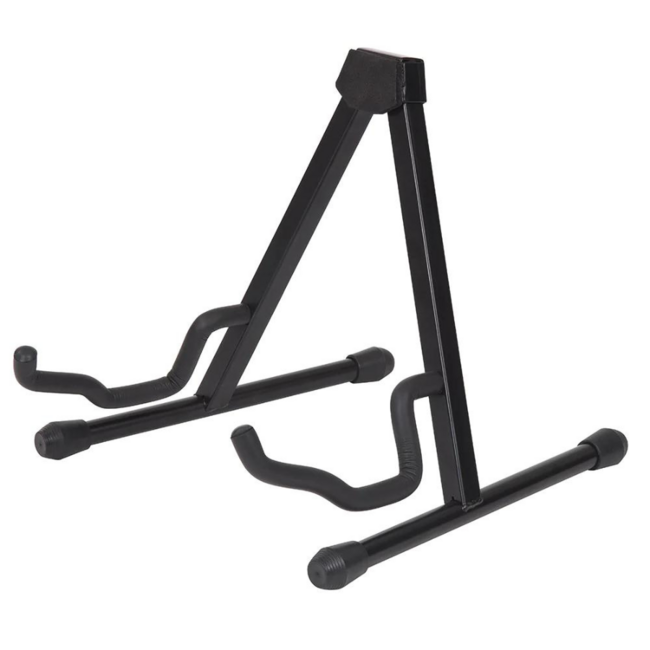 The large cradle is perfect for acoustic guitars, electric guitars and basses, with soft padding on all points of contact, ensuring protection and a cushioned support for your precious instrument. With four rubber feet offering maximum stability, the Kinsman 'A' Frame Universal Guitar Stand is ideal for use at home, in schools, in the studio or on stage.