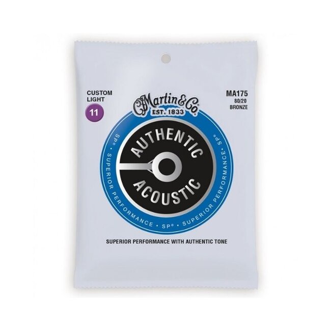 Martin Authentic Acoustic Studio Performance (SP) strings are engineered with the performer in mind, and they will always stand up to rigorous practice and performance schedules. The core is Martin's highest tensile-strength which is then tin-plated for corrosion resistance (including the non-wounds). The cores are then wrapped with Martin's highest quality 80/20 Bronze wire which consistently delivers a bright, sparkly tone.