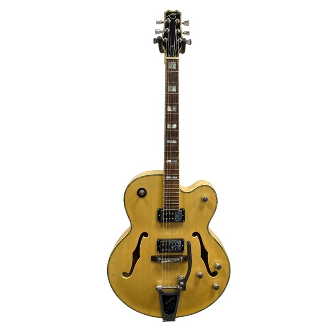Finished in a clean Natural gloss, the Peavey Rockingham stands out with elegant binding, block fingerboard inlays, and vintage-inspired appointments. A great choice for players seeking classic hollow-body tone with reliable modern hardware.