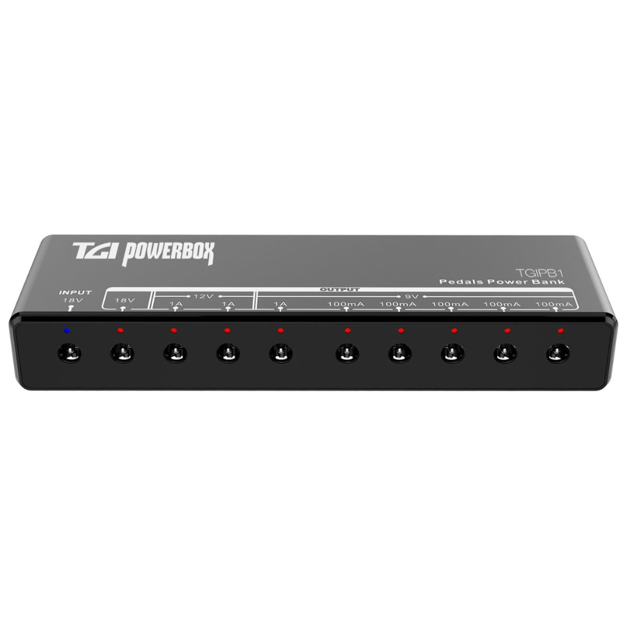 The TGI Power Box TGIPB1 is a compact yet powerful multi-output power supply designed for guitar and effects pedalboards. With up to 10 isolated DC outputs, it offers clean, reliable power for your entire setup — drastically reducing noise and hum often introduced by chained power supplies. It features dedicated 9 V, 12 V and 18 V outputs for maximum flexibility, short-circuit and overload protection for safety, and a sturdy aluminium housing that fits neatly onto or under your pedalboard. Whether you’re gigging, recording or practising, the TGIPB1 delivers professional-level power management at a smart price.